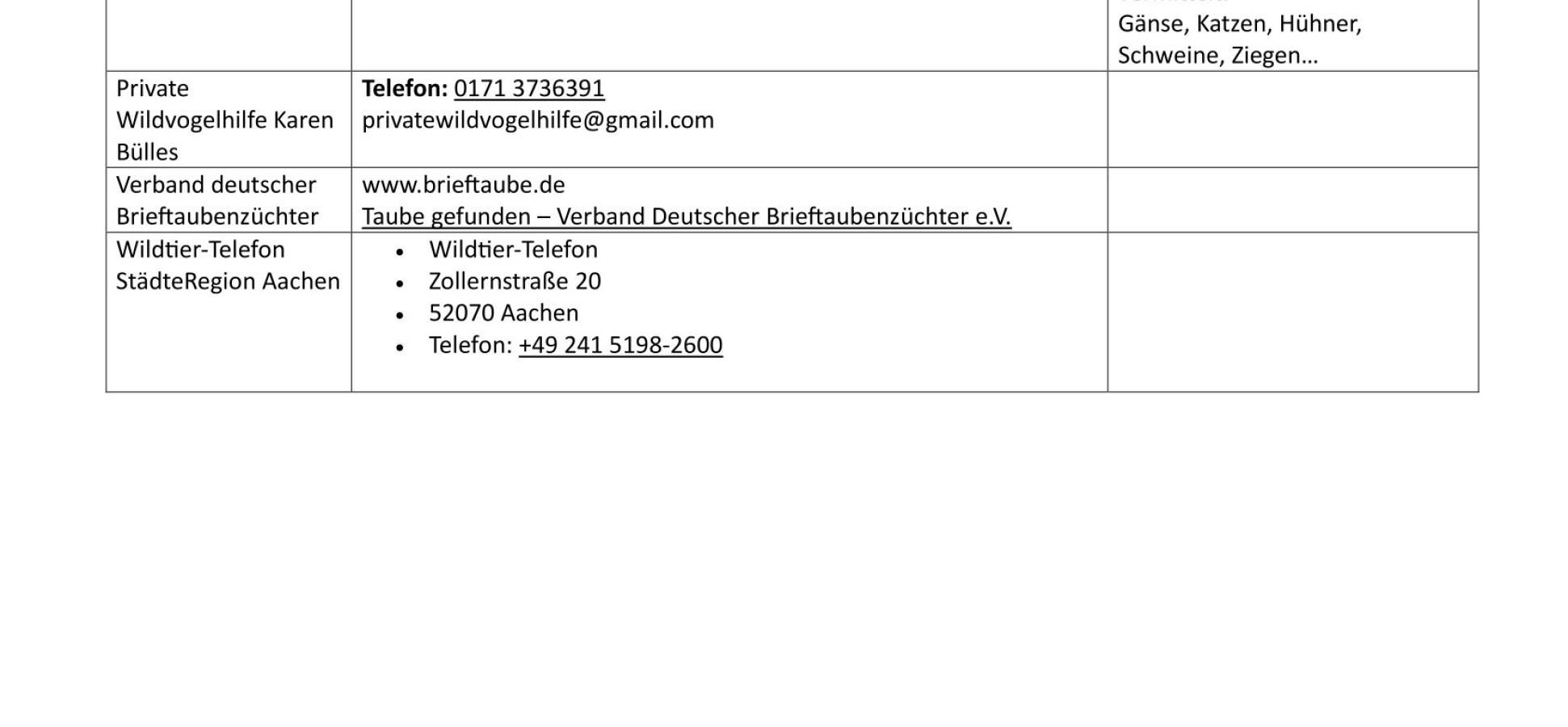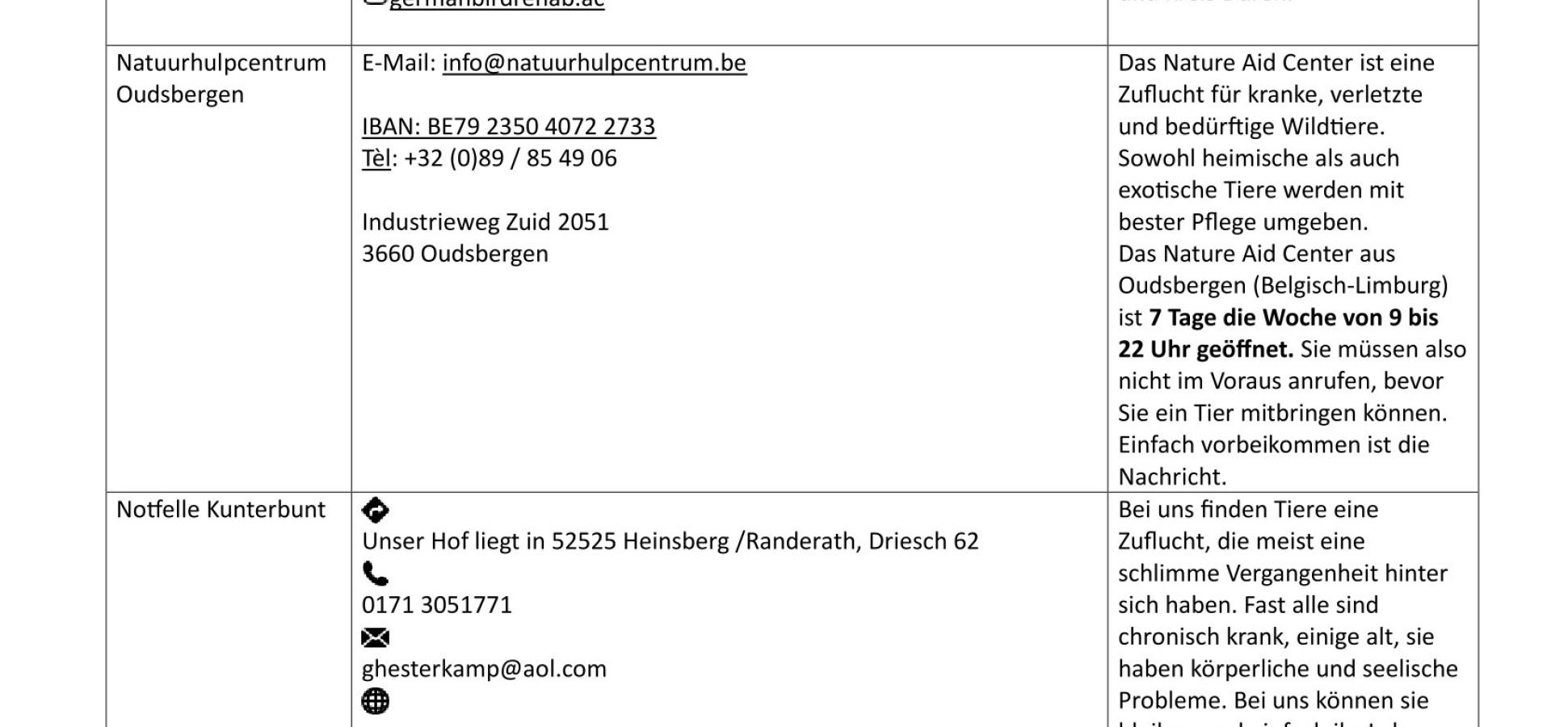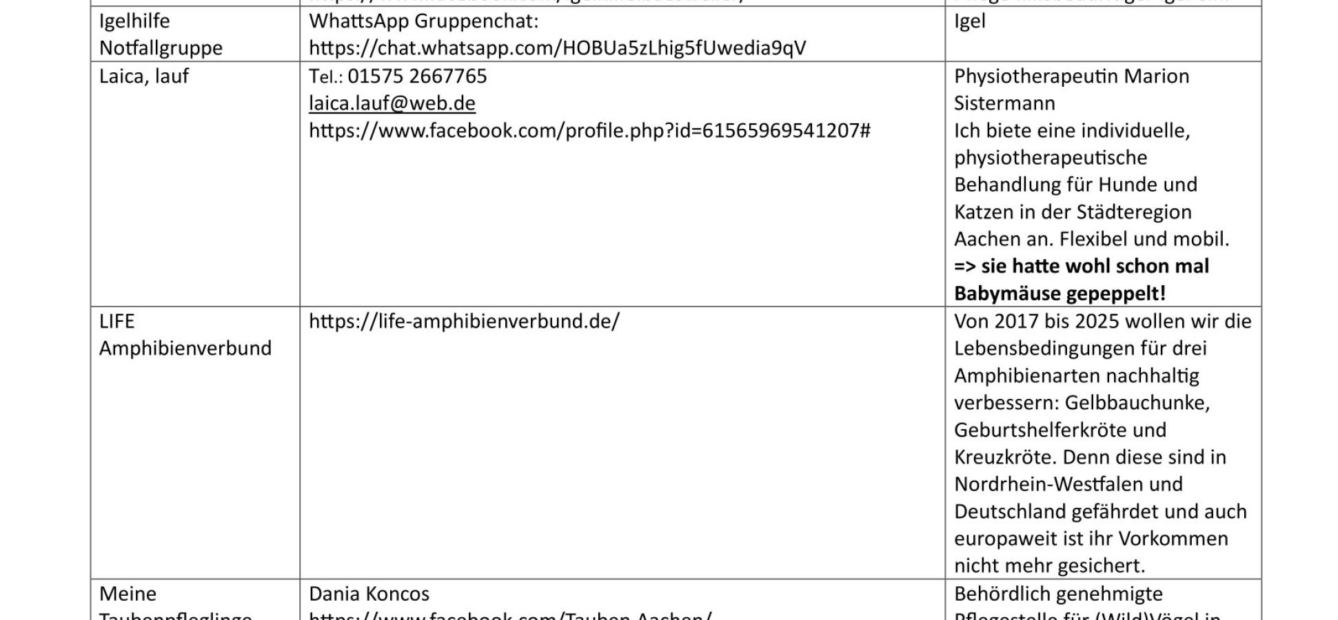 Oben steht vorübergehend eine Liste mit Anprechpartner für die Tierhilfe
